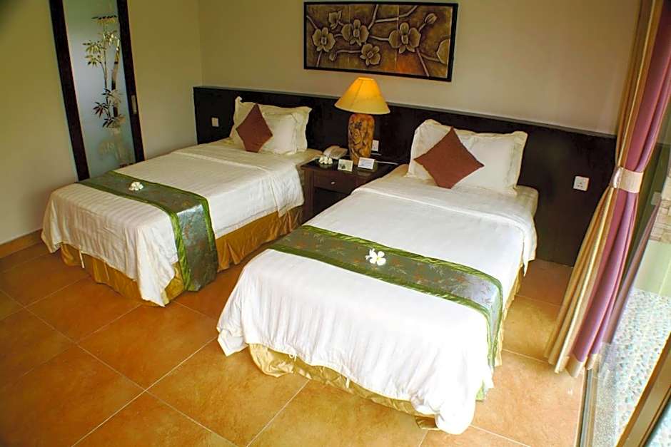 Indulge in a spacious Deluxe Double or Twin Room with Garden View, featuring air conditioning, a balcony, and a luxurious King size bed, perfect for accommodating 2 adults and 1 child. Enjoy the serene garden scenery in a cozy 323 sqft retreat.